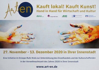 Unter dem Motto ‘Hand in Hand für Wirtschaft und Kultur’ „Shoppt lokal! Kauft Kunst! Online kann ja jeder“, wollte die Landesregierung in einer NRW-weiten Aktion die coronaleidenden Künstler und Geschäfte zusammenbringen. Die Geschäfte sollten den Künstlern eine Verkaufsplattform zur Verfügung stellen und die Kunstwerke sollten Menschen in die Geschäfte locken.