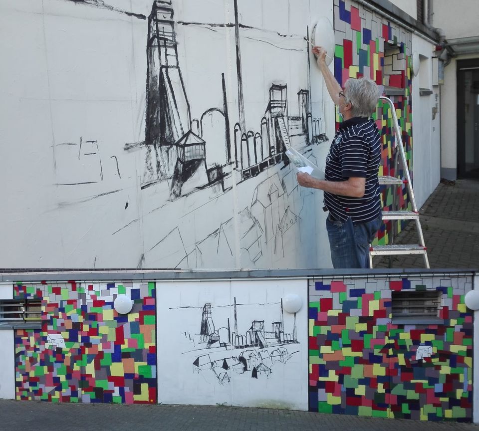 Das durch die Bürgerausstellung angeschobene Projekt, eine neue Fassadengestaltung des Hauses der Stiftung Bethel in der Voerder Straße, wurde heute mit Abstand vom Künstler Jürgen Unger (79) in seiner Freiluftbühne, um die Hasper Hütte erweitert und signiert.