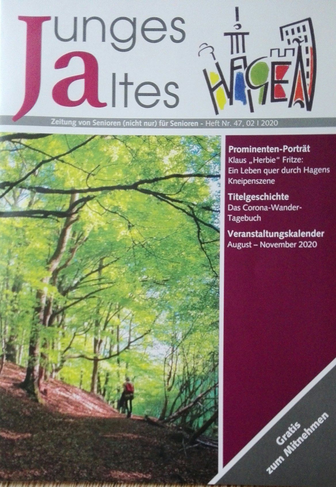 “Hagener Seniorenzeitung -Junges altes Hagen- Die Zeitung erscheint dreimal jährlich und ist kostenlos im Seniorenbüro, den Bürgerämtern und der Bürger-Information im Rathaus oder der Schatzinsel erhältlich.“ https://www.hagen.de/web/de/fachbereiche/fb_55/fb_55_04/fb_55_0405/veroeffentlichungen.html
