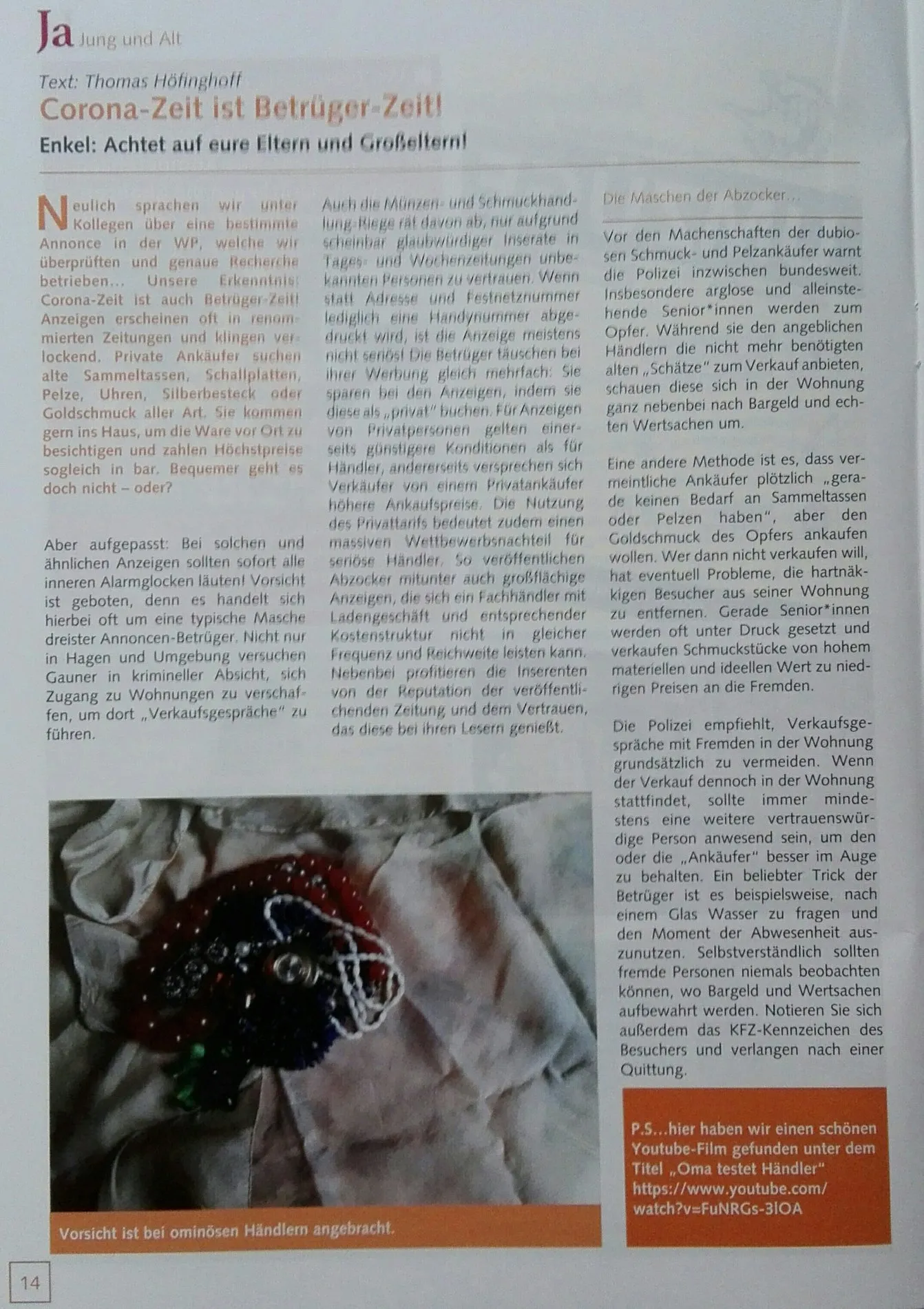 23.04.2021 Die neue Ausgabe “Junges altes Hagen“ ist endlich erschienen! Auch wenn Corona unser aller Leben grundlegend verändert, Geschäfte geschlossen und ältere Menschen unter sehr starken Einschränkungen leben, geht nicht alles digital!