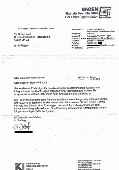 Was im letzten Jahr geschah, zwingt uns alle zum Nachdenken und wird unvergessen bleiben! Man konnte in dieser Zeit, problemlos und effizient, hunderte von Kindern, zwischen Schwelm & Hohenlimburg, Lenks der B7, einkleiden und deren Grundbedürfnisse erfüllen. Ob Bett, Schulplatz, Anmeldungen, dem Weihnachtsgeschenk,….bis zum Elternproblem... Im April 2016 haben wir die 95qm große Kinderkleiderkammer geräumt und an benötigter Stelle abgegeben, der Notunterkunft Spielbrinkschule, Notunterkunft Delstern, katholische Kirche St. Bonifazius, Malteser, Familienzentrum Haspe und einer evangelischen Einrichtung in Wuppertal und Gevelsberg https://www.hagen.de